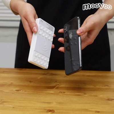 iPhoneにケーブルを繋ぐ必要がなく、充電器とiPhoneが触れることでお互いの電力を送電/受電させる仕組みが働き、iPhoneを充電することができます。