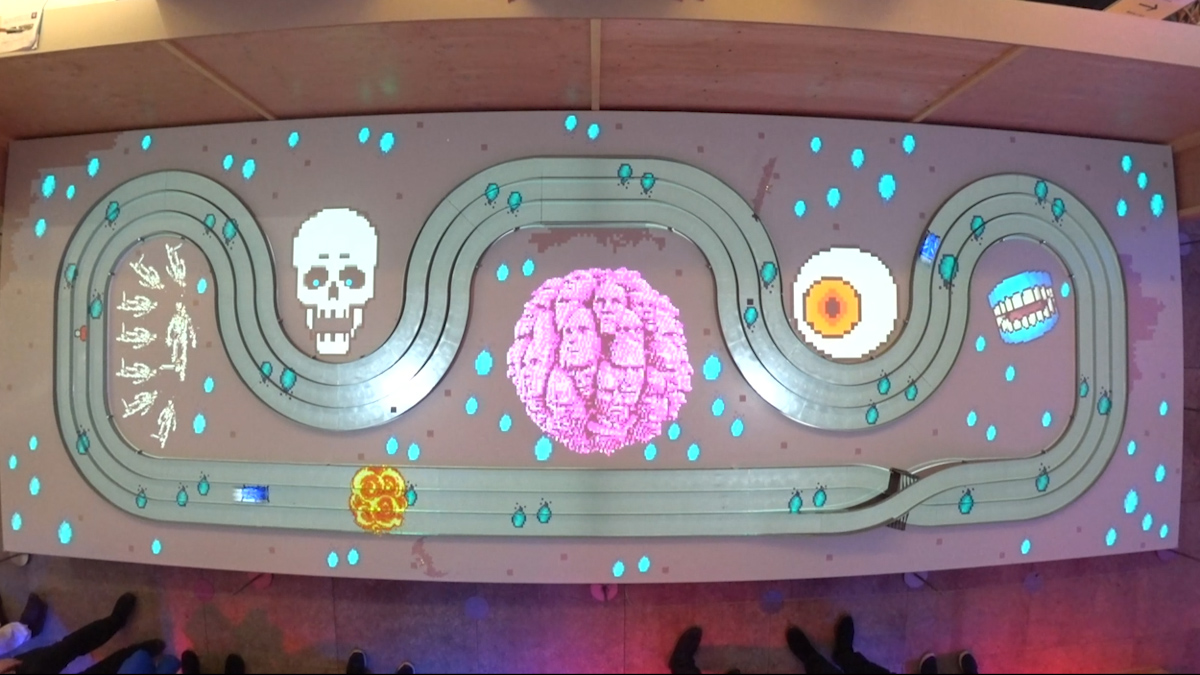 特にわくわくできたポイントは、サーキットの世界観。コース上にコインが現れ、そこをミニ四駆が通過するとチャリンチャリンと効果音が鳴ったり、DJのターンテーブル上を走るとスクラッチされたような音が鳴ったり........。