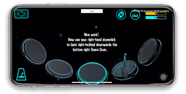 「Pocket Drum」のアプリには3つのモードが用意され、ドラムの練習が捗る仕様。