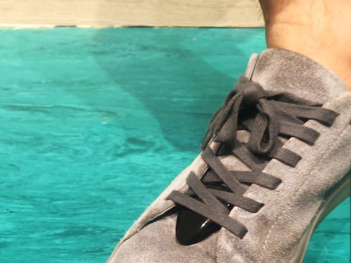 「Pocket Guitar」はアプリにつなげばギターの音が演奏できるプロダクトだが、足につけて使えばバスドラムを再現するセンサーとして使用できる。