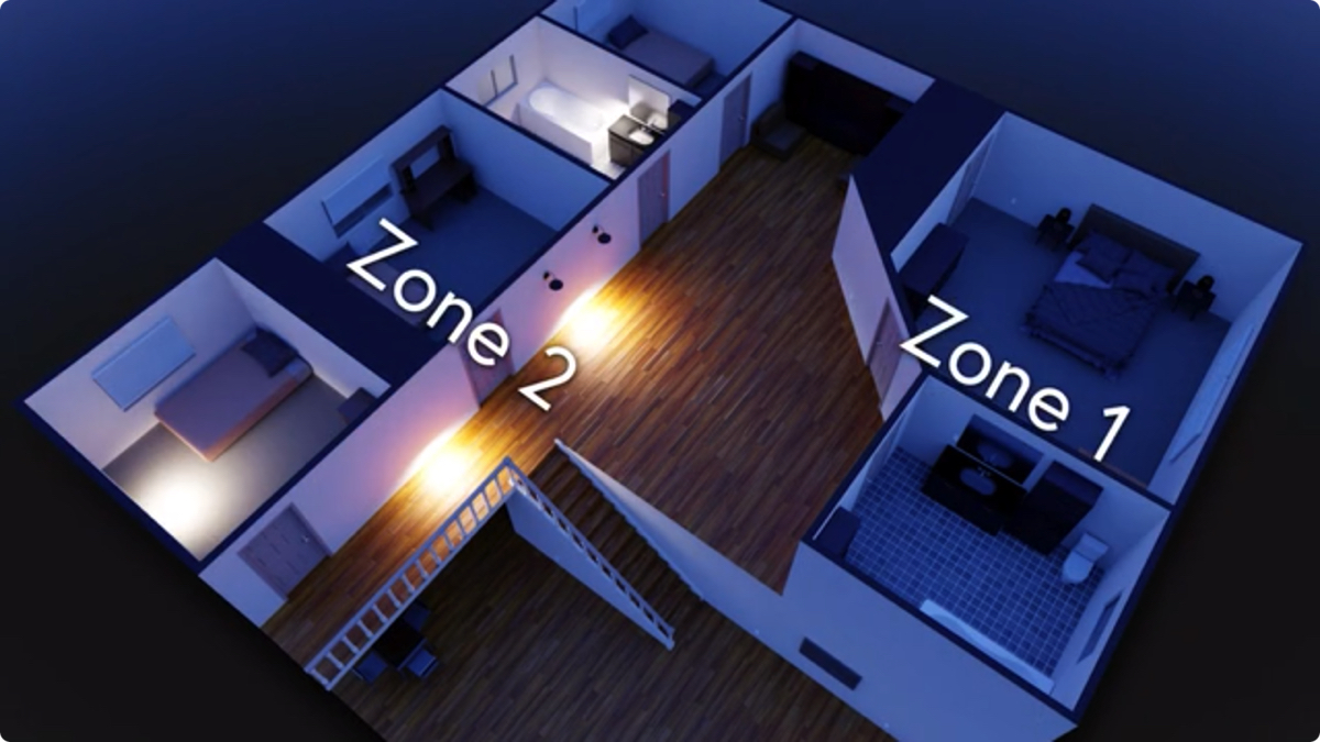 また設定でエリア毎に紐付け可能。例えば、ベッドルームで反応するとそれに対応して、廊下、階段、トイレなども同時に点灯させるなんてこともできる。そのほか、タイマー設定や光量の調節などの各種設定も本体から設定可能だ。
