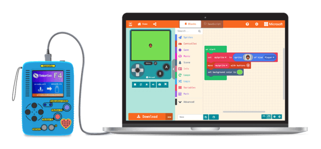 ゲーム作りにはMicrosoftが提供する無料のプログラミング学習プラットフォーム「Microsoft MakeCode」を利用することで、子どもでも遊びながらプログラミング学習ができる。