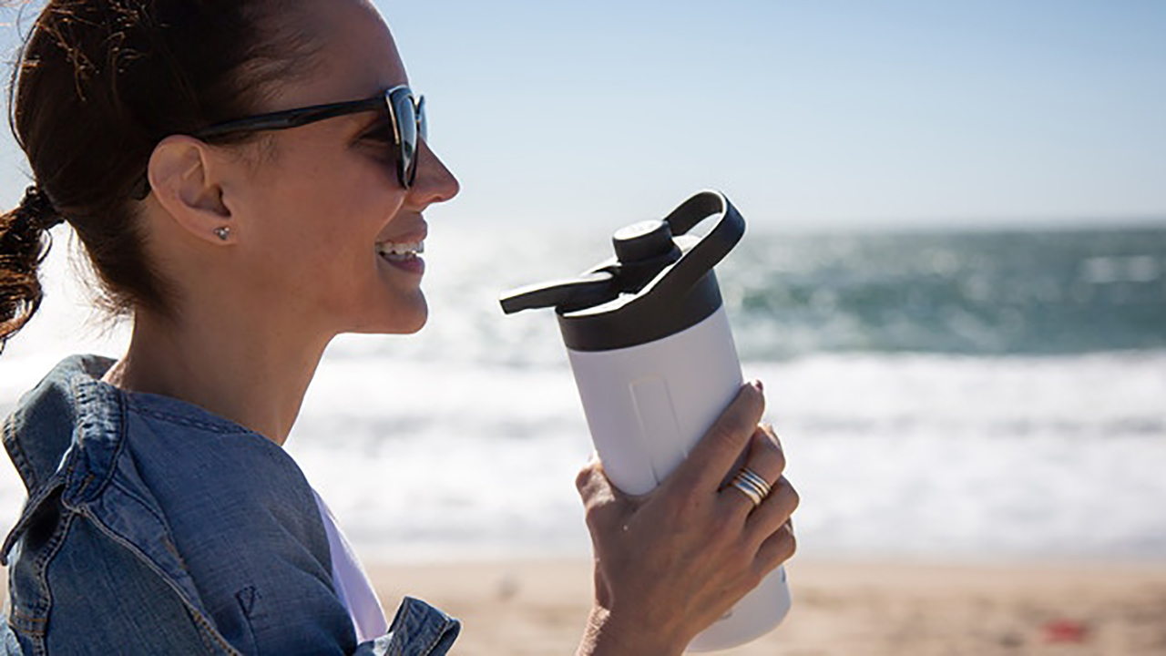 ボトルは2重の真空断熱ステンレススチール製で、炭酸を冷たいまま1日中キープ。電気を使わないためバッテリーや充電も必要ない。