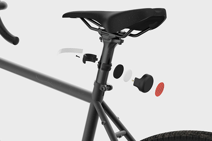 外見はコンパクトなリフレクターといった感じで、AirTagの存在を気づかせない。