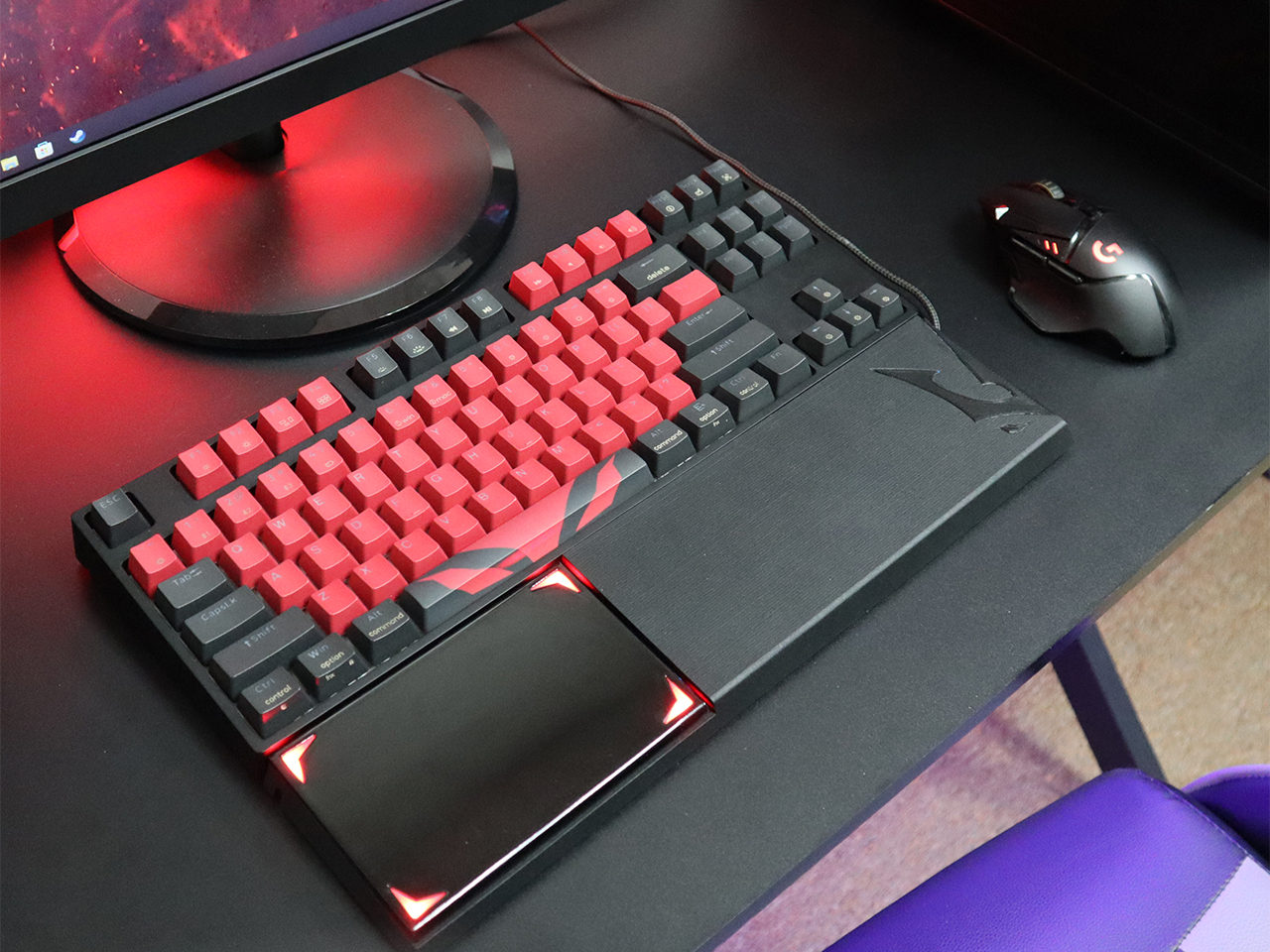 パッドにはミラーポリッシュを施し、手のひらに最適なグリップ感を実現。形状も人間工学に基づき、直感的な使用感と快適さを重視してデザインされている。このパームレストはあらゆるテンキーレスキーボードに対応。