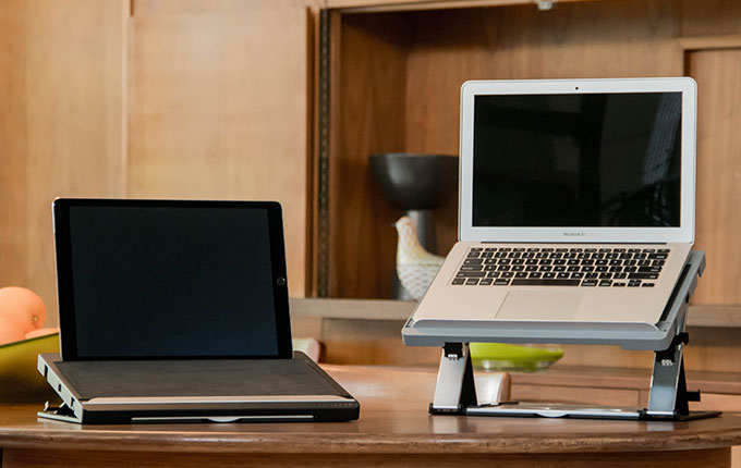 20段階の角度調整が可能。膝の上で作業するときやデスクの上でタブレットをセットしてサブディスプレイとして使用するとき、細かい角度調整と固定ができる。