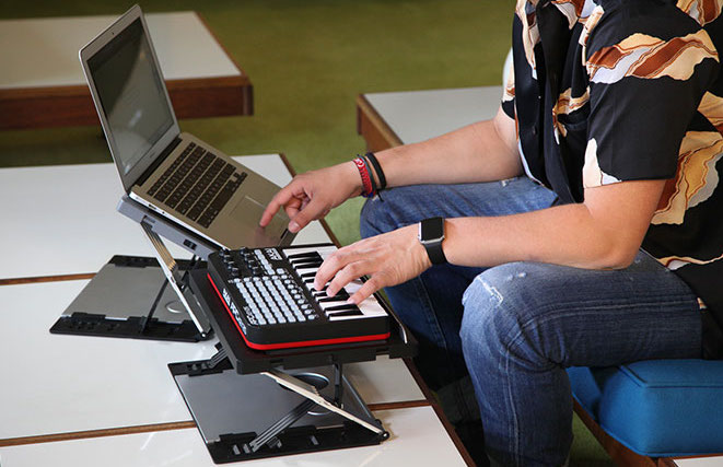 耐荷重量も約27kgと頑丈なので、たとえば音楽制作で使うMIDIなどの重いものを乗せても平行に保ってくれる。
