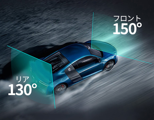 フロントカメラのみの場合、最大4Kで撮影できる。ただし、フロントとリアカメラ両方同時に使う場合は、フロントカメラは2Kで記録されるという。リアの解像度は1080p。視野角は、フロントが150°、リアが130°あり、3車線以上の範囲を記録できるとしている。