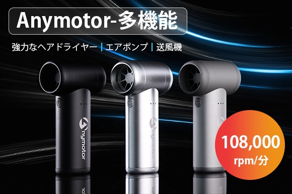 「Anymotor」はワイヤレスで軽量ながらも108,000rpmを発生するモーターを搭載。