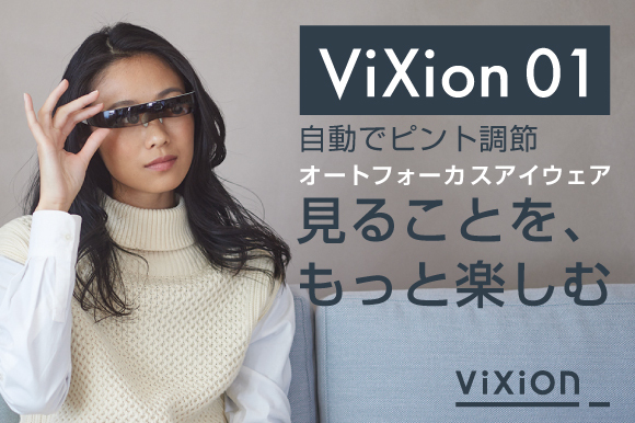 老眼でなくとも、目を酷使して近くと遠くでピントが合わないことがないだろうか。そんな時に役立つのが「ViXion01」。メガネとは異なり、細かな作業や近くと遠くを繰り返し見る時など、目のピントを合わせづらい時にゴーグル型の「ViXion01」がピント合わせを助けてくれるという。ViXionでは、「見え方の能力拡張」を目指した新しい概念のアイウェアだとしている。