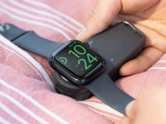 手のひらサイズでお出かけや打ち合わせなどさまざまな場所に持ち運べる。バッテリーサイズは約2,000mAhで、約40分でApple Watchをフル充電できる。AirPodsの充電にも対応している。