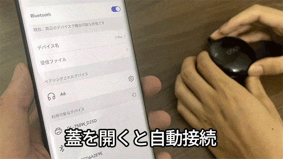 Bluetooth 5.3に対応。ペアリング後はケースのフタを開けることでデバイスに自動接続される。