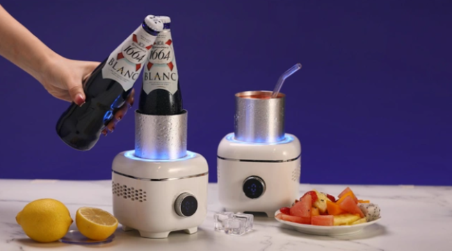 「卓上ドリンクホルダー」は飲み物の急速冷却・加熱と保冷・保温ができるホルダー。