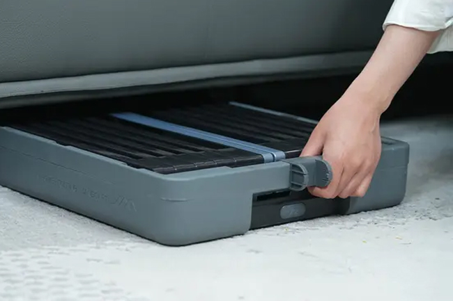 ハンドルをたためば収納ボックスとして使える。タイヤもロック可能。