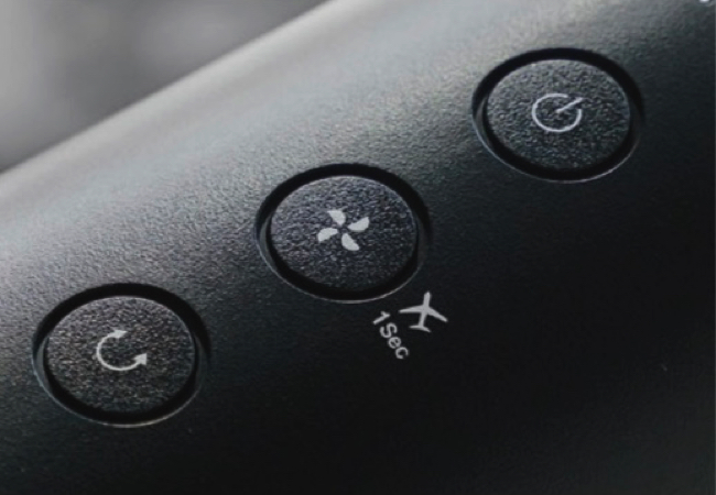 一度でもその風に当たれば、ほかの扇風機と違うことは一瞬でわかるだろう。そう、どんなに当たり続けても痛くないのだ。理由は、二重の羽根がそれぞれ送り出す風が途中で混ざり合うことで、点ではなく面で風が届くため。私自身、扇風機に当たり続けて、こんなに気持ちいいと感じたことはなかった。