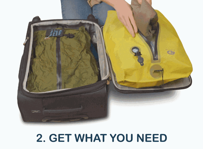 「4D Pack Plus」は、電動エアポンプで簡単に圧縮でき、トランクやクローゼットの収納スペースを節約できる。