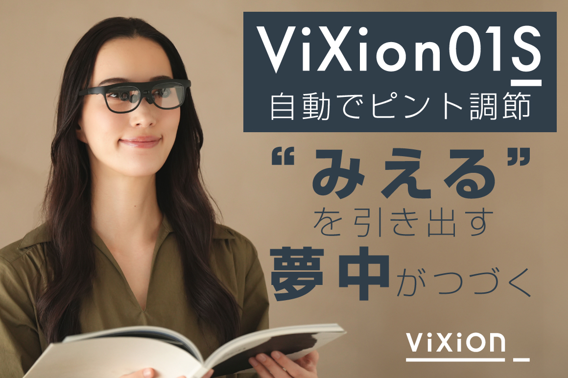 「ViXion01S」は、近くも遠くもはっきり見えるAF(オートフォーカス)機能搭載のアイウェア。