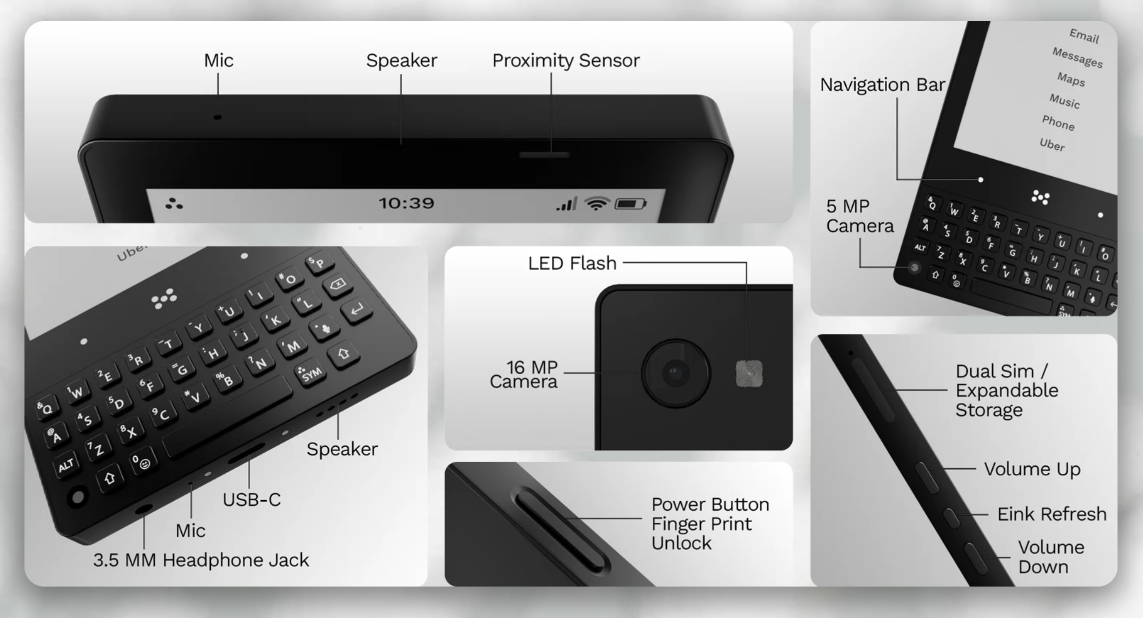 E Inkタッチスクリーン、物理キーボードを搭載。カメラはリアが16MP、フロントが5MPとなっている。
