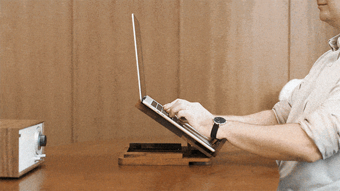 「Slow 'N' Steady」は、天然素材の温もりと機能性を兼ね備えた、持ち運び可能な木製のワークスタンド。